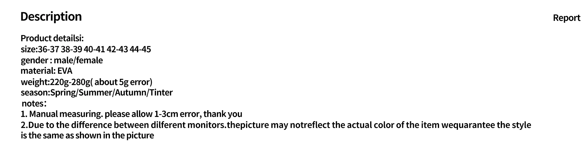 Insole Material: PVC