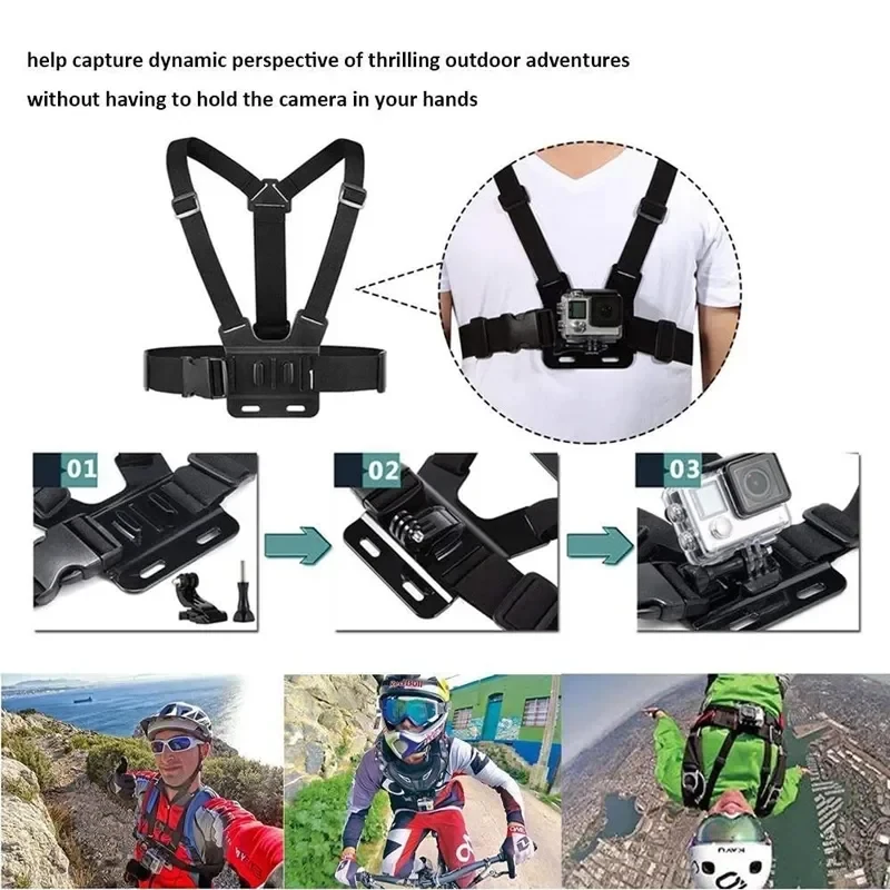 All-in-One Action Camera Accessories Kit Head Strap Chest Strap Mount Adjustable for GoPro Hero Phone Osmo SJCAM AKASO insta360