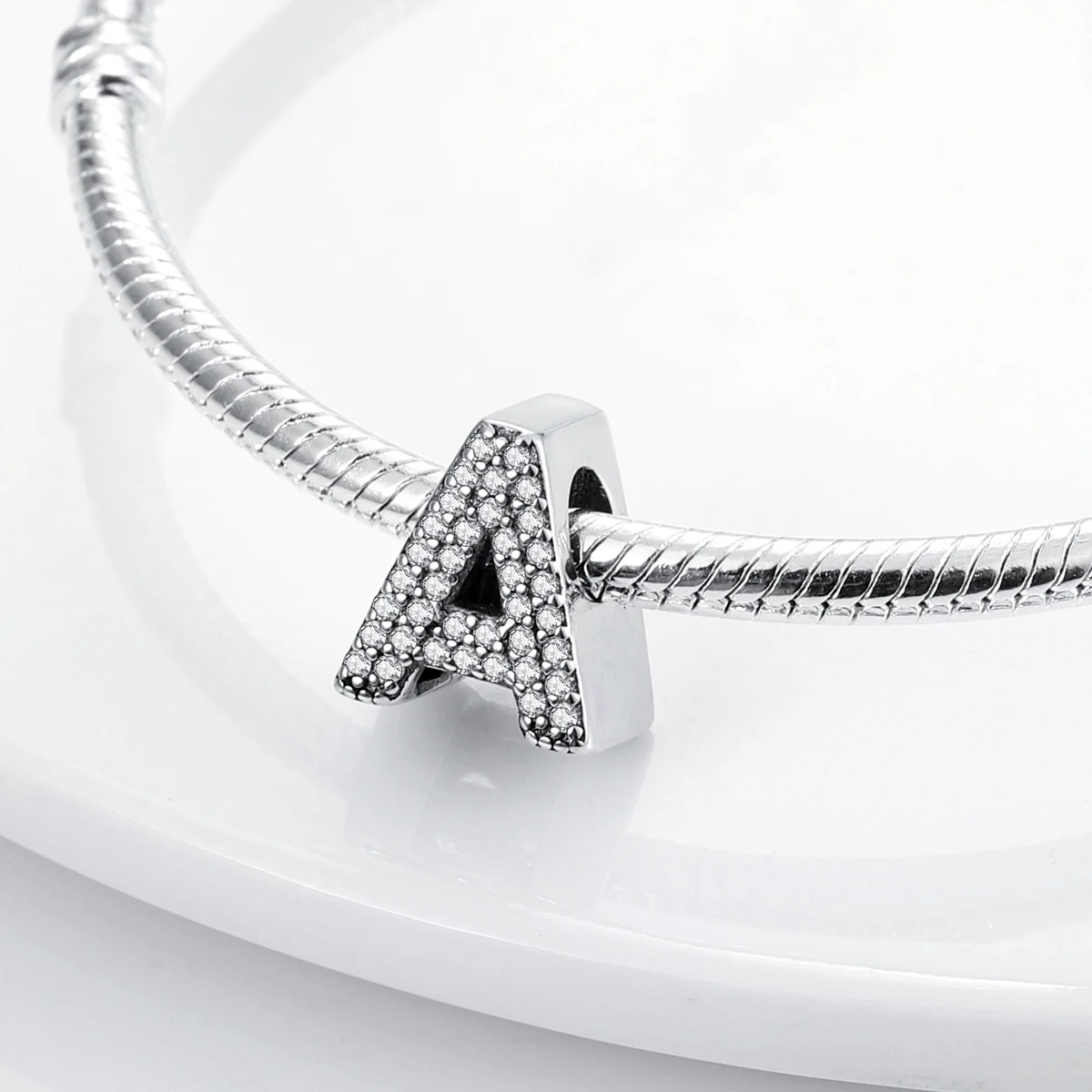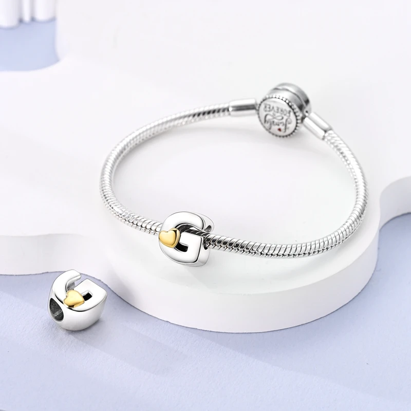 Fit Original 925 Sterling Silver Letter Charms Beads A-Z Golden Love Alphabet Charms For Women Fine DIY Birthday Jewelry Gifts