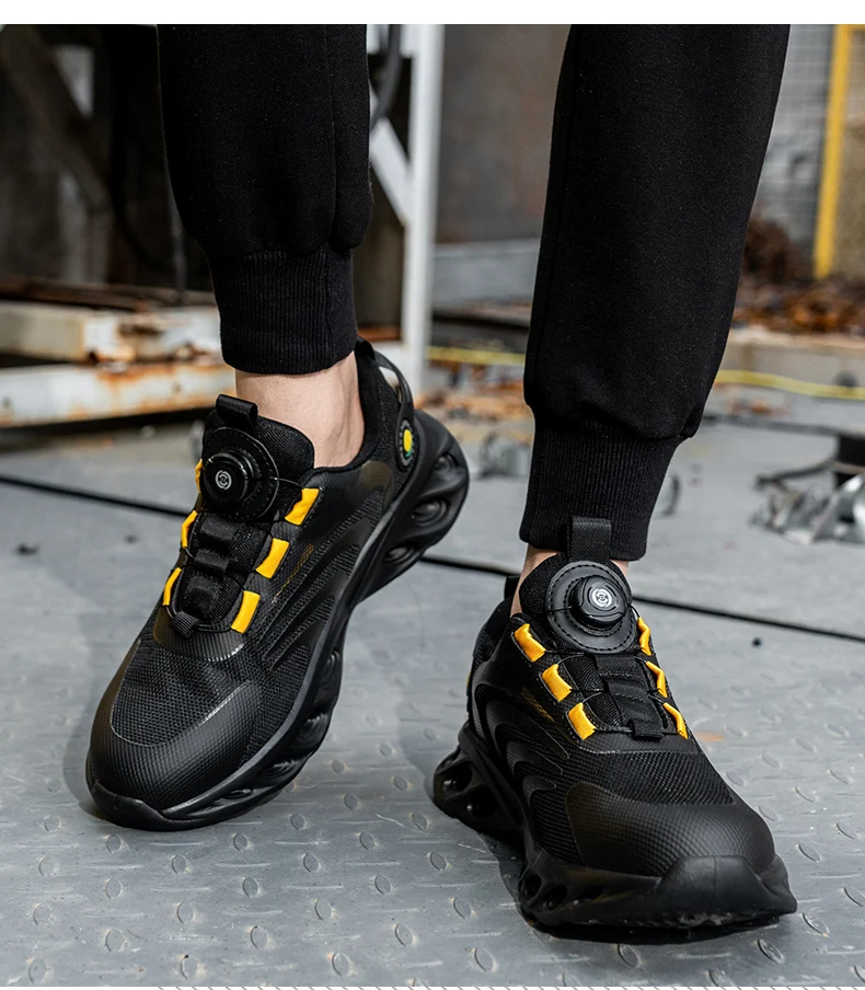 Rotary Buckle Work Sneakers Protective Shoes Lightweight Safety Shoes Puncture-Proof Anti-smash Steel Toe Shoes Work Footwear