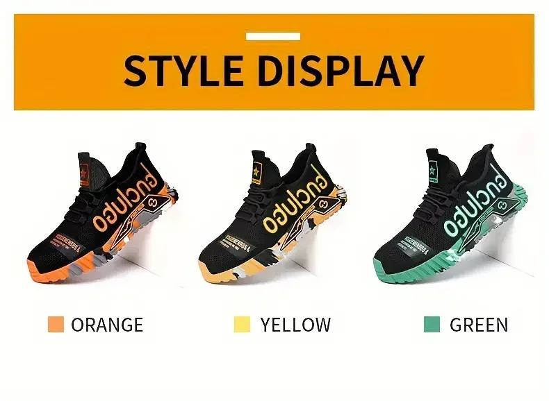 Super light safety shoe:It is like the weight of a pair of running shoes. They can help you to work happily all day without exhausting your feet. With super soft insoles and High elastic sole, your feet are safe and comfortable. Breathable upper is very soft Comfortable, Keep your feet comfortable and breathable.