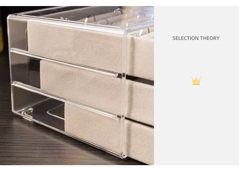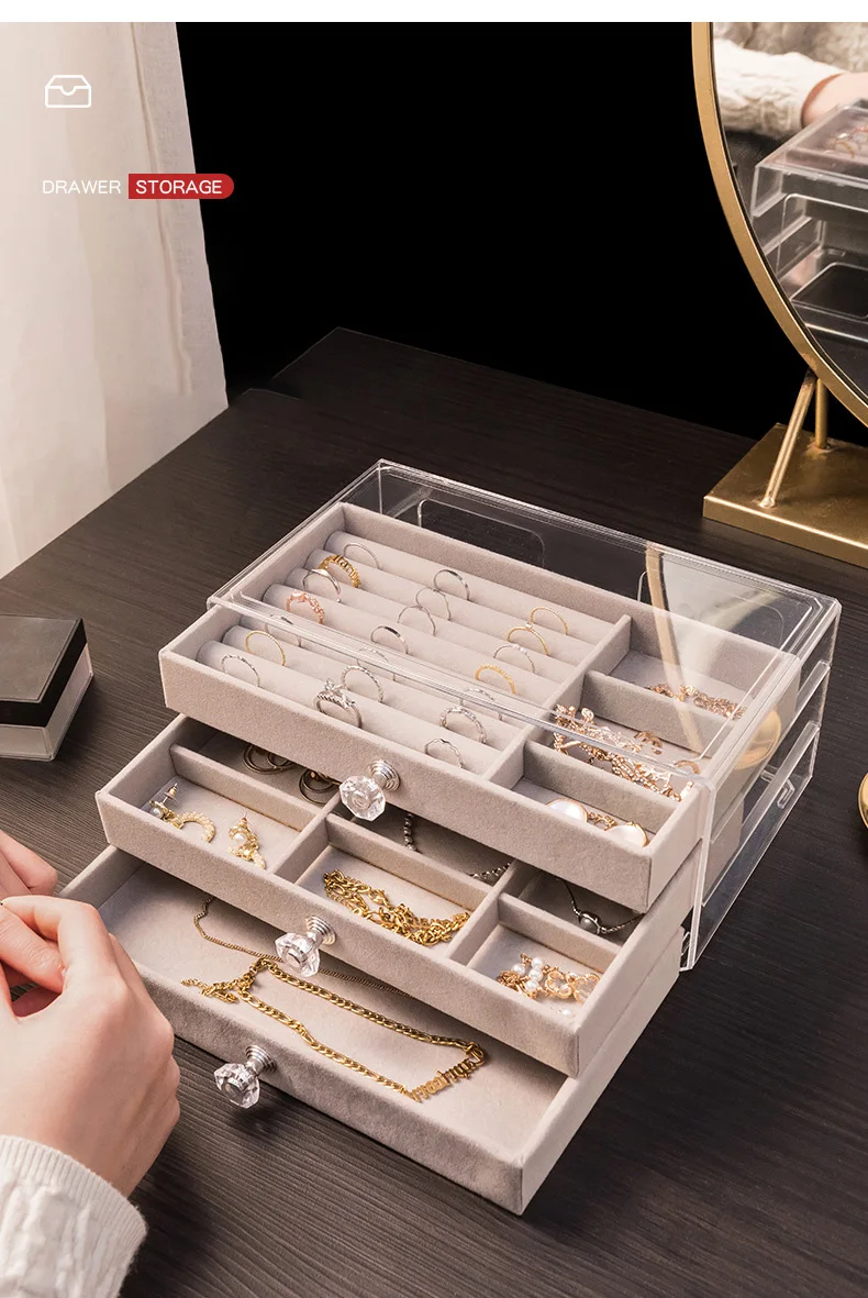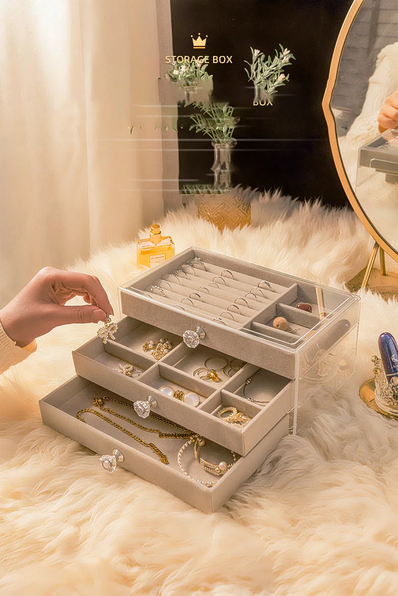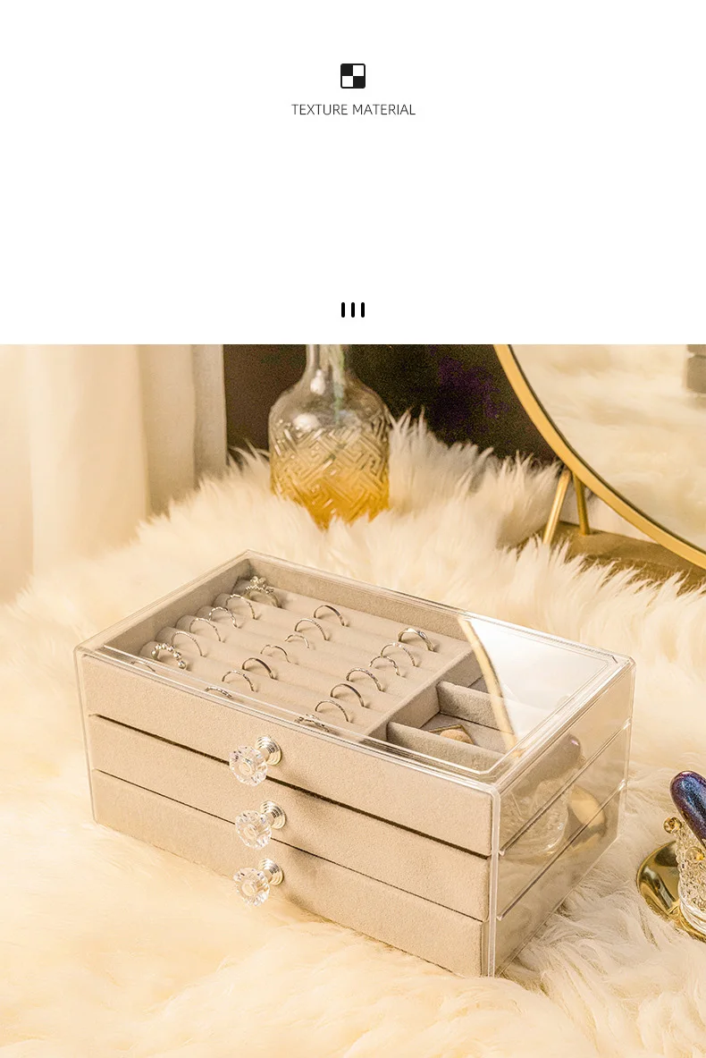 Velvet Stud Earrings Storage Box Three Layer Jewelry Organizer Dust Proof Drawer Design for Accessories Dressing Jewelry Box
